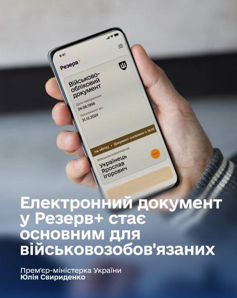 Уряд оновив порядок оформлення військово-облікових документів: відтепер вони створюються лише в електронному форматі. Резерв ID стає основним документом для призовників, військовозобов’язаних і резервістів. Його можна отримати у застосунку "Резерв+".